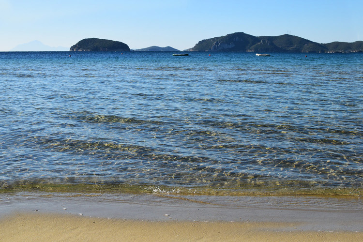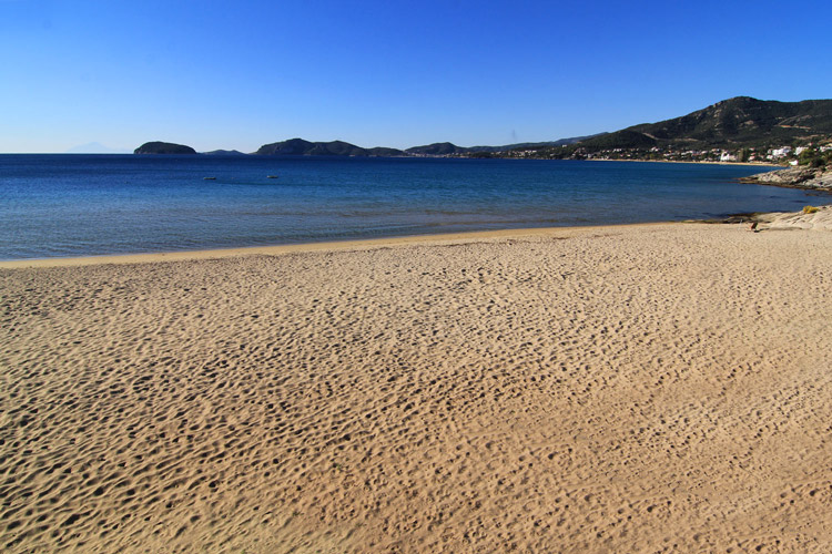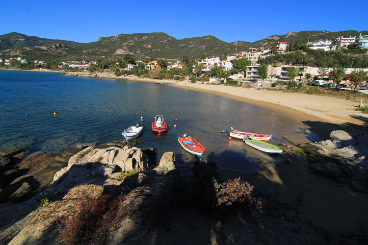 Γραφική αμμώδεις παραλία Γλάστρες με θέα τα μικρά κοντινά ακατοίκητα νησιά, το νησί της Θάσου και το Άγιο Όρος, Παληό Καβάλας