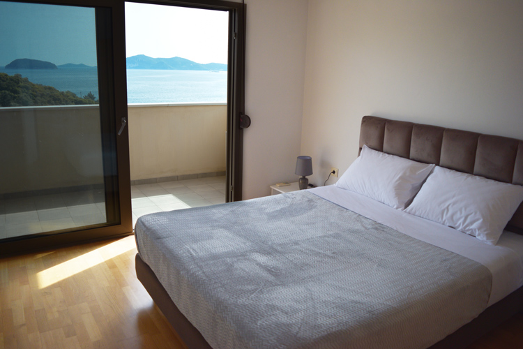 Κρεβατοκάμαρα με πολύ μεγάλο διπλό κρεβάτι και θέα στη θάλασσα, 2ος όροφος, Βίλα Feel the Sea