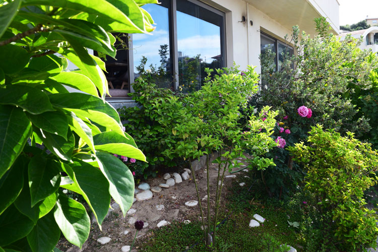 Θέα στον κήπο και στη θάλασσα από τον 1ο όροφο