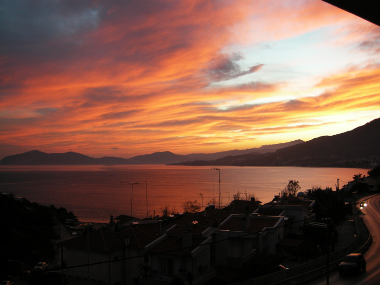 Θέα στο Ηλιοβασίλεμα απο το μπαλκόνι στο 2ο όροφο της βίλας Feel the Sea, Παληό Καβάλας, Ελλάδα