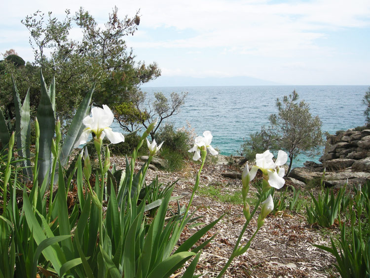 Ανθισμένες Ίριδες και Νυφούλα, κήπος της Βίλας Feel the Sea
