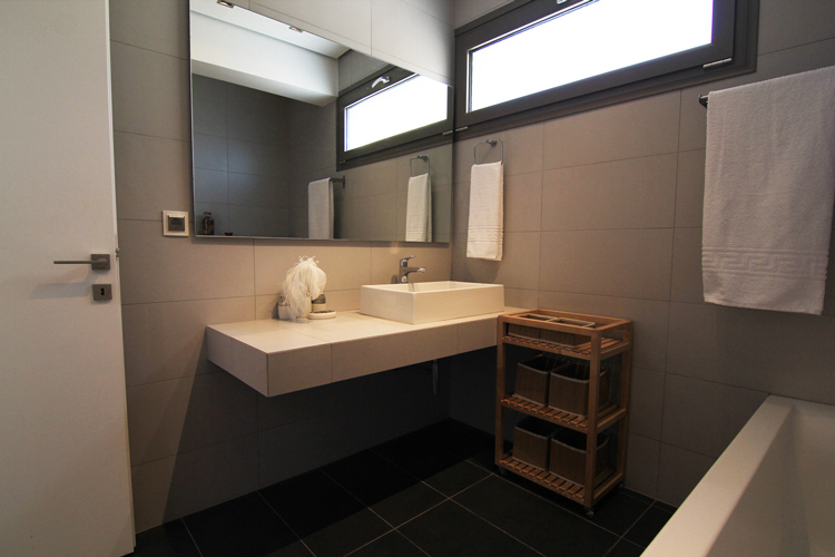 Ευρύχωρο, μοντέρνο, φωτεινό μπάνιο με μεγάλο καθρέφτη, 2ο όροφο, βίλα Feel the Sea