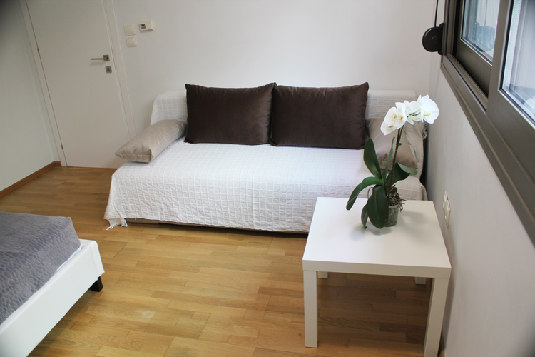 Υπνοδωμάτιο με θέα στο βράχο, με υπερδιπλό κρεβάτι και καναπέ-κρεβάτι