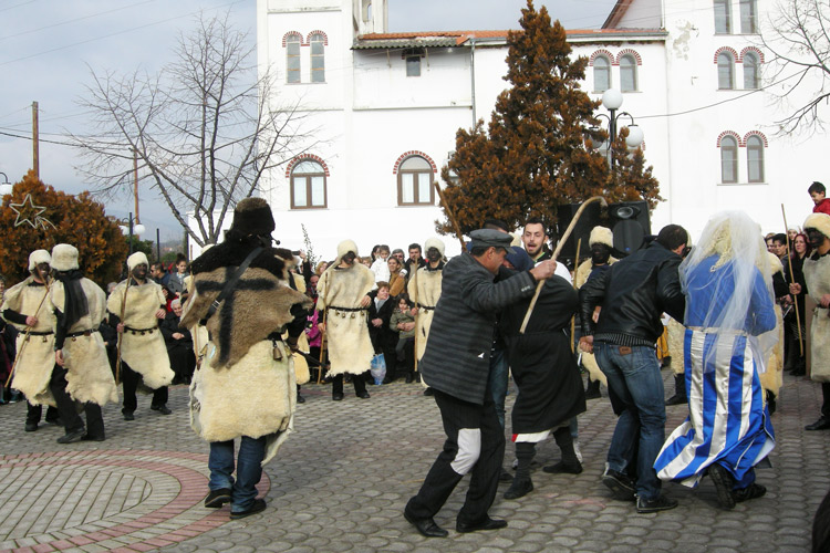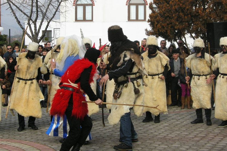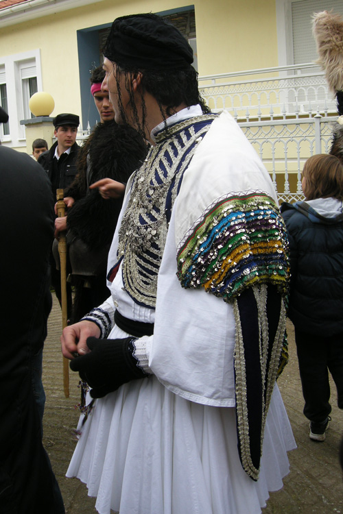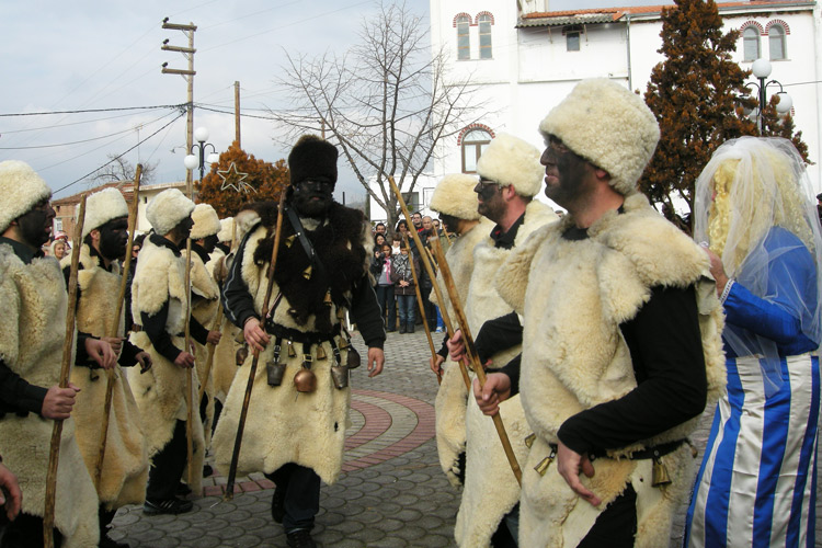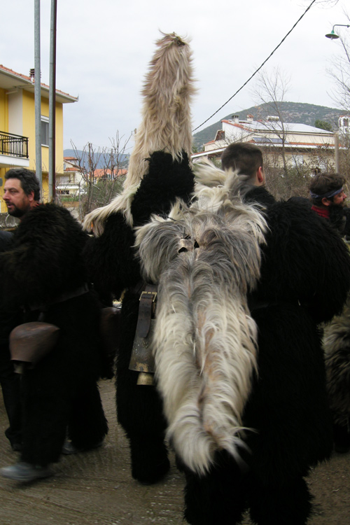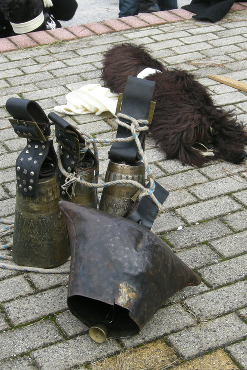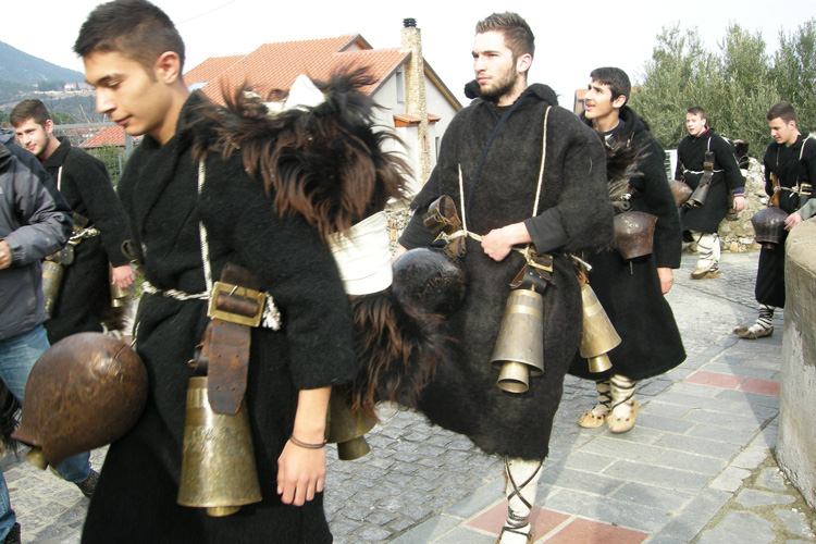 Όλοι οι συντελεστές φορούν κουδούνια όπως προβιές και δέρματα τράγων. Τα κουδούνια στη στολή των ηθοποιών προέρχονται από τις παραδόσεις του θεού Διονύσου. Στην αρχαία Ελληνική μυθολογία ο Διονύσιος είναι ο θεός της οινοποίησης, της γονιμότητας και της διασκέδασης. Ο σκοπός των κουδουνιών είναι να ξυπνήσουν τη φύση από το χειμώνα.